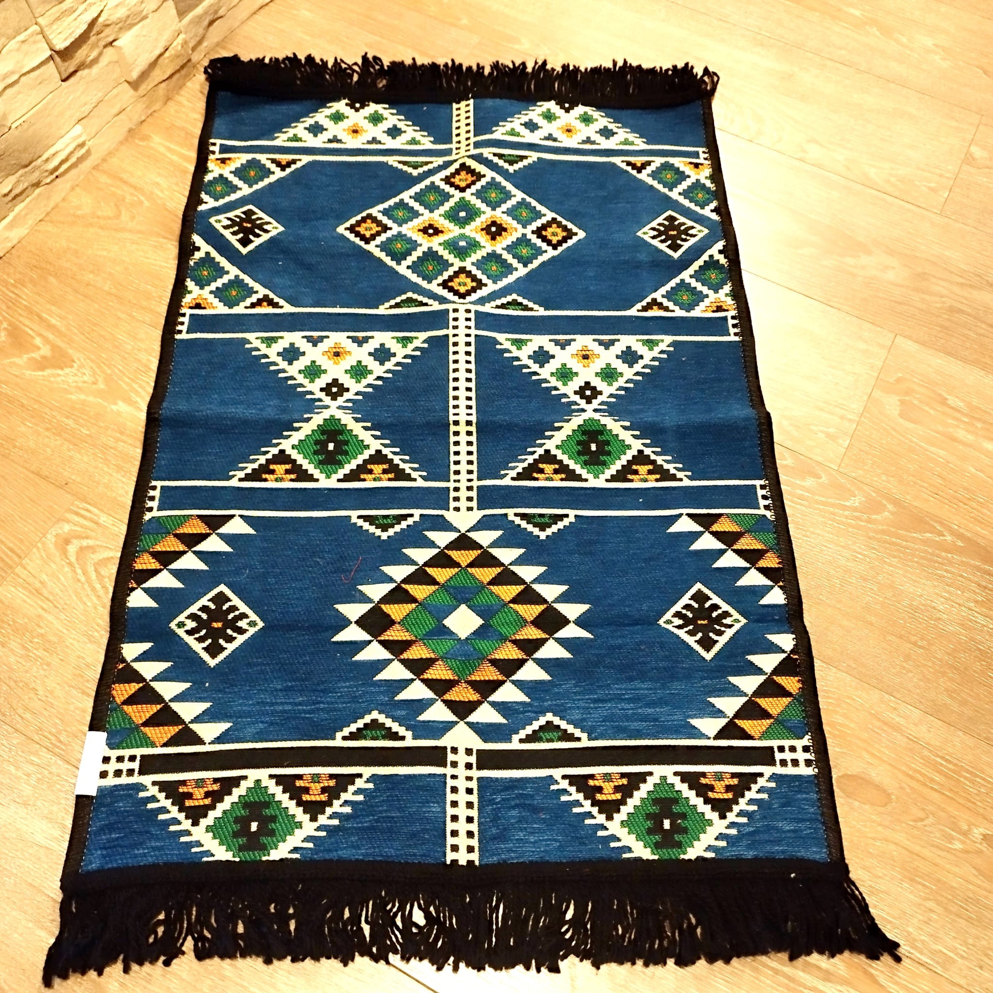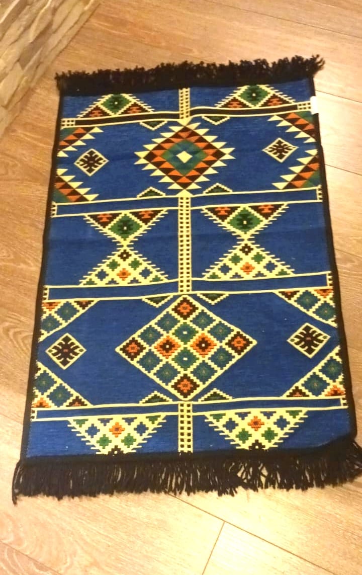 Covor țesut, model geometric albastru 60x90cm cod02