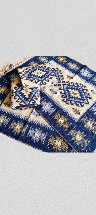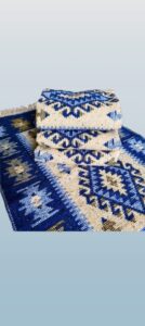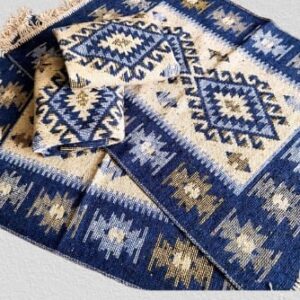 Set 4 covoare traditionale, tesute, doua fete 60×90 cm romb albastru